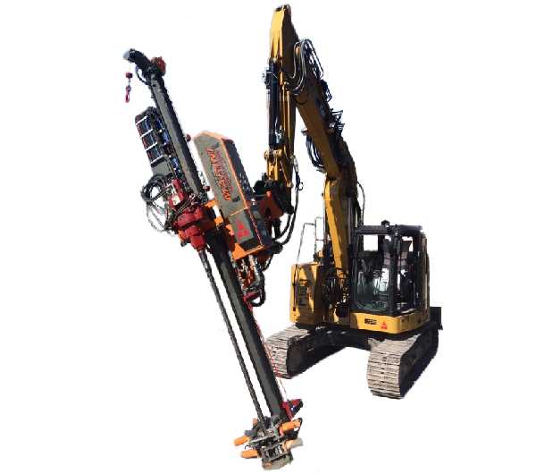 hydraulic & pneumatic drilling mast attachments suitable for excavators & tele-handlers.
